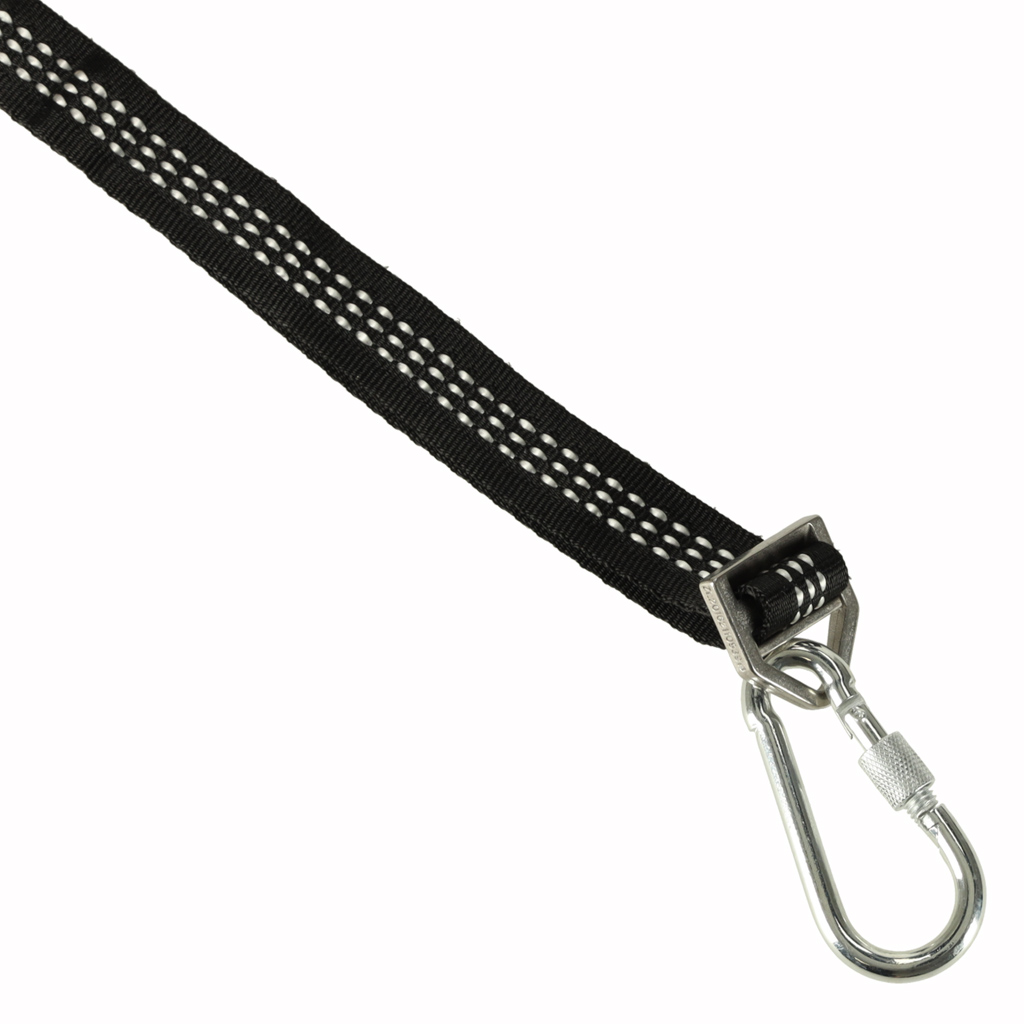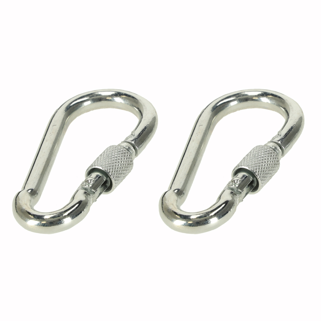 dwa solidne karabińczyki, każdy o maksymalnym udźwigu 300 kg.