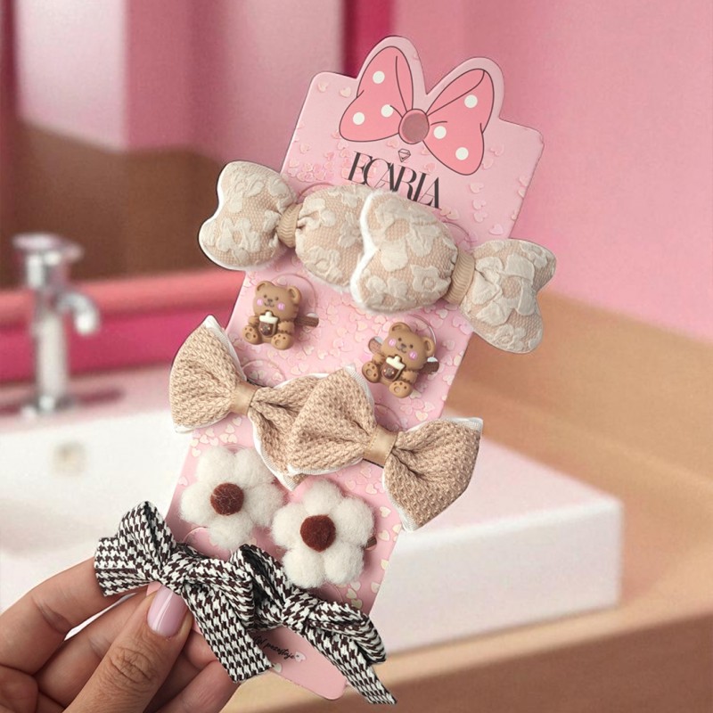 Zestaw frotek gumek do włosów 10w1 na plakietce, KOKARDKI, MIŚ GUM171