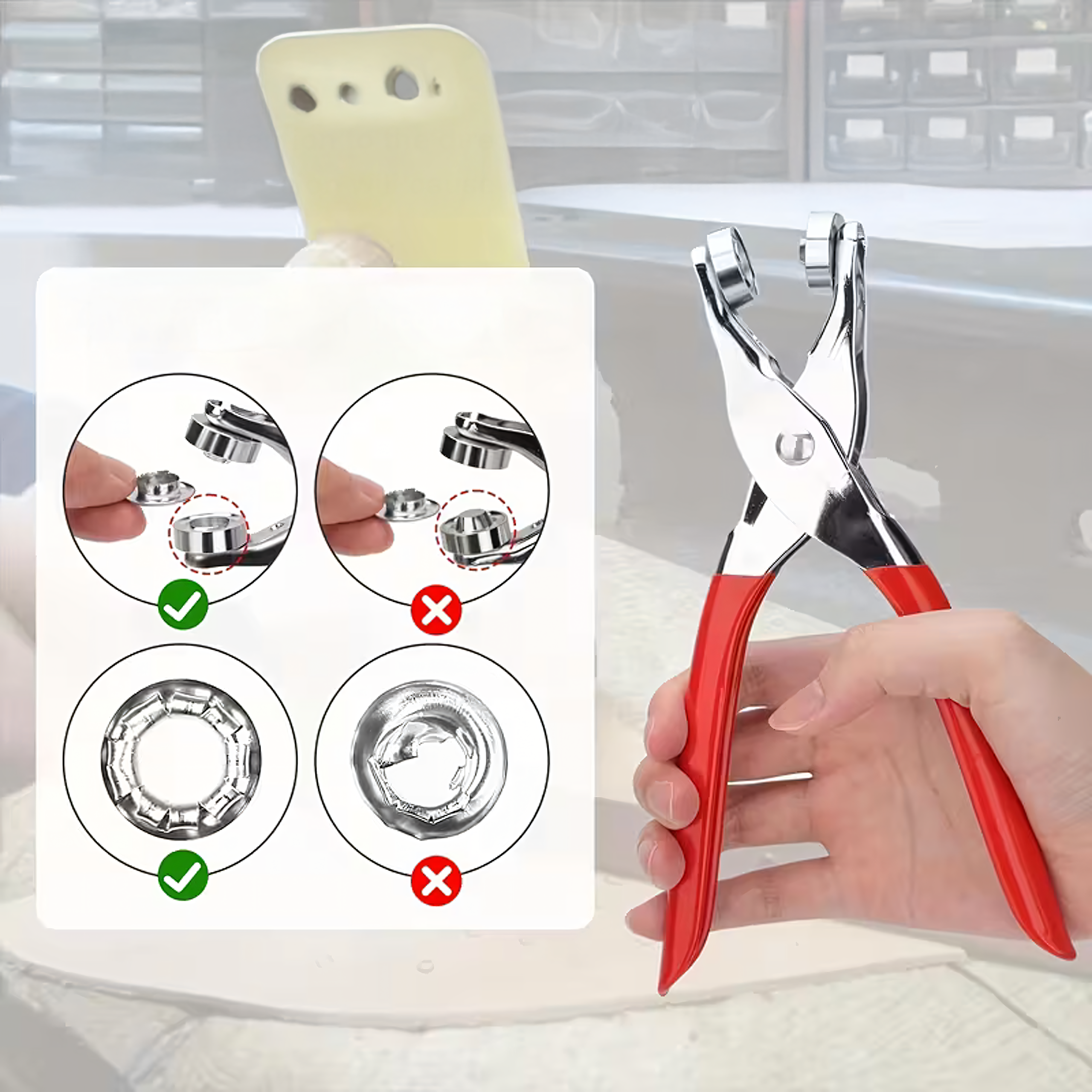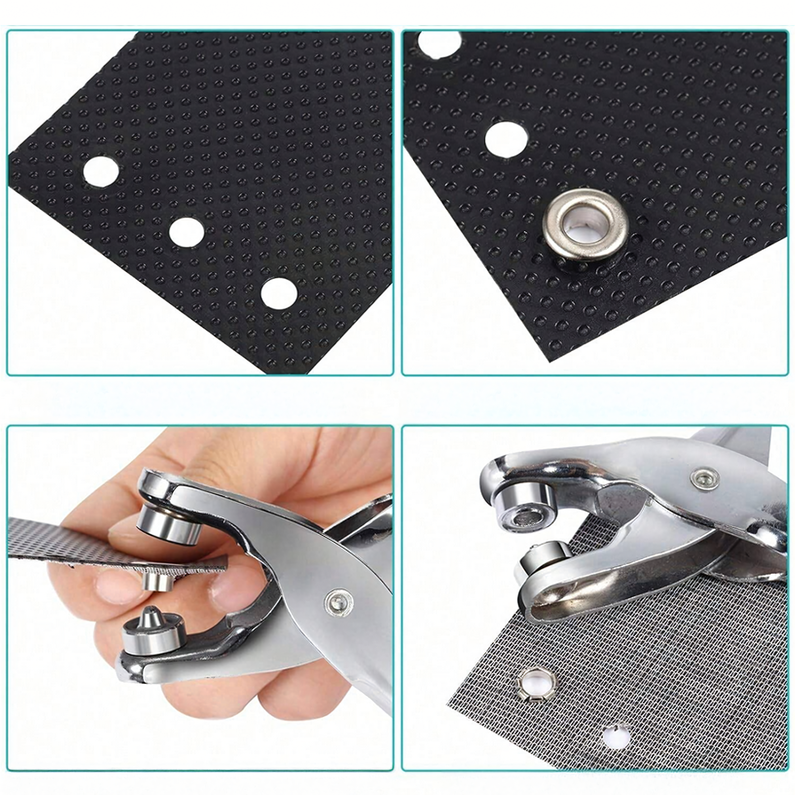 Praktyczny komplet do montażu oczek i nap, idealny dla majsterkowiczów, pasjonatów DIY oraz kaletników. Dzięki szczypcom i 100 szt. oczek (złotych), bez problemu wzmocnisz materiał i nadasz mu estetyczny wygląd.
