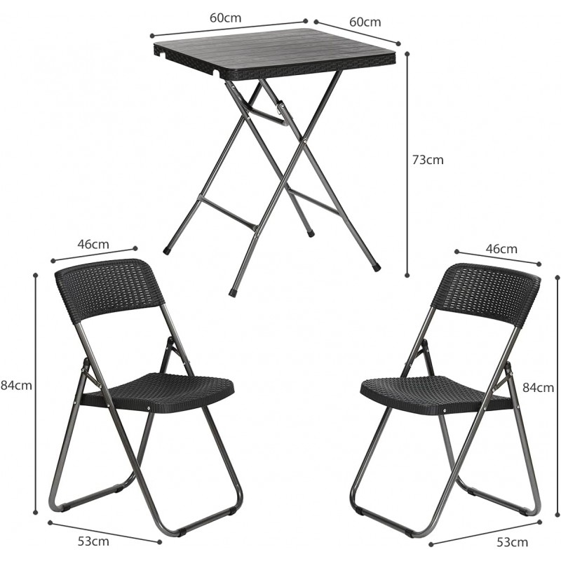 – Krzesła i stół są składane, dzięki czemu zajmują niewiele miejsca podczas przechowywania. Wymiary opakowania: