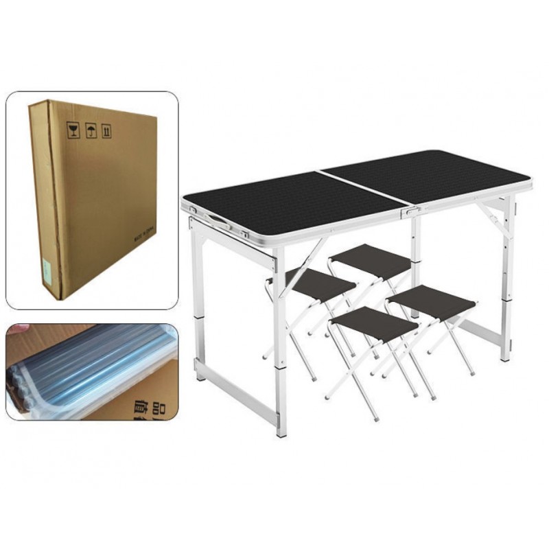Odporny na warunki atmosferyczne, wykonany z trwałego, odpornego na słońce czy deszcz tworzywa. Stolik po złożeniu tworzy praktyczną walizkę, dzięki czemu zajmuje małą przestrzeń i jest łatwy do przeniesienia. Wewnątrz stolika można spakować krzesełka. Specyfikacja: