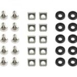 Zestaw montażowy dla urządzeń w szafie serwerowej 19″ składający się śrub, nakrętek i podkładek. Zestaw składa się z 10 kompletów.