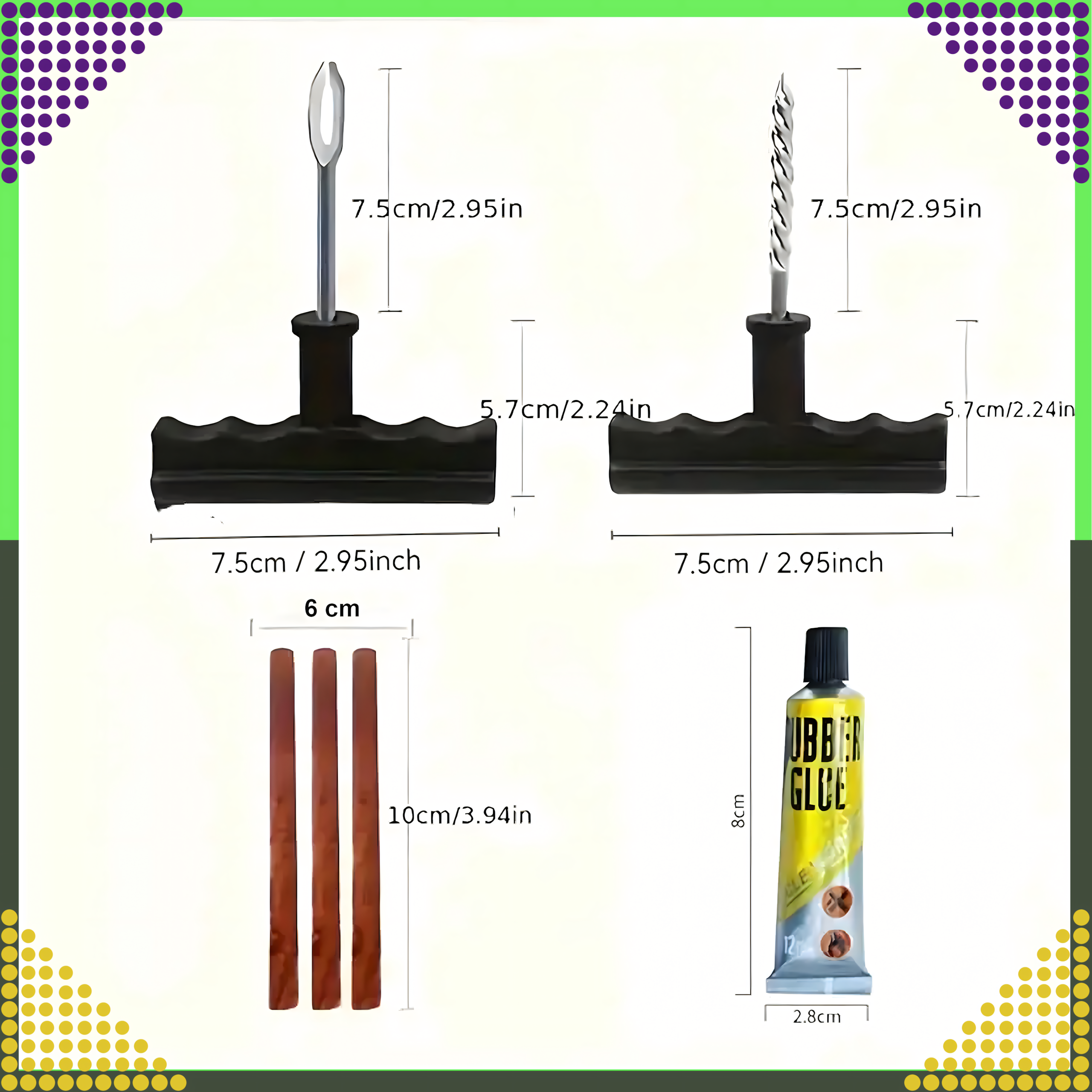 ✔️ Uniwersalność – zestaw idealny do naprawy opon bezdętkowych samochodowych, motocyklowych, rowerowych i innych.