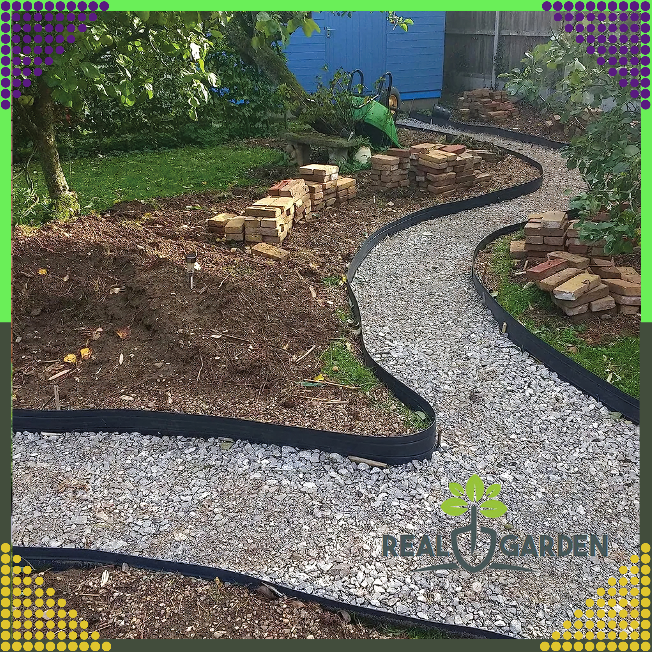 Obrzeże trawnikowe jest używane do projektowania ogrodów, aby oddzielić trawnik od ścieżek, innych części ogrodu, rabat kwiatowych, kory, lub nawierzchni z grysu.