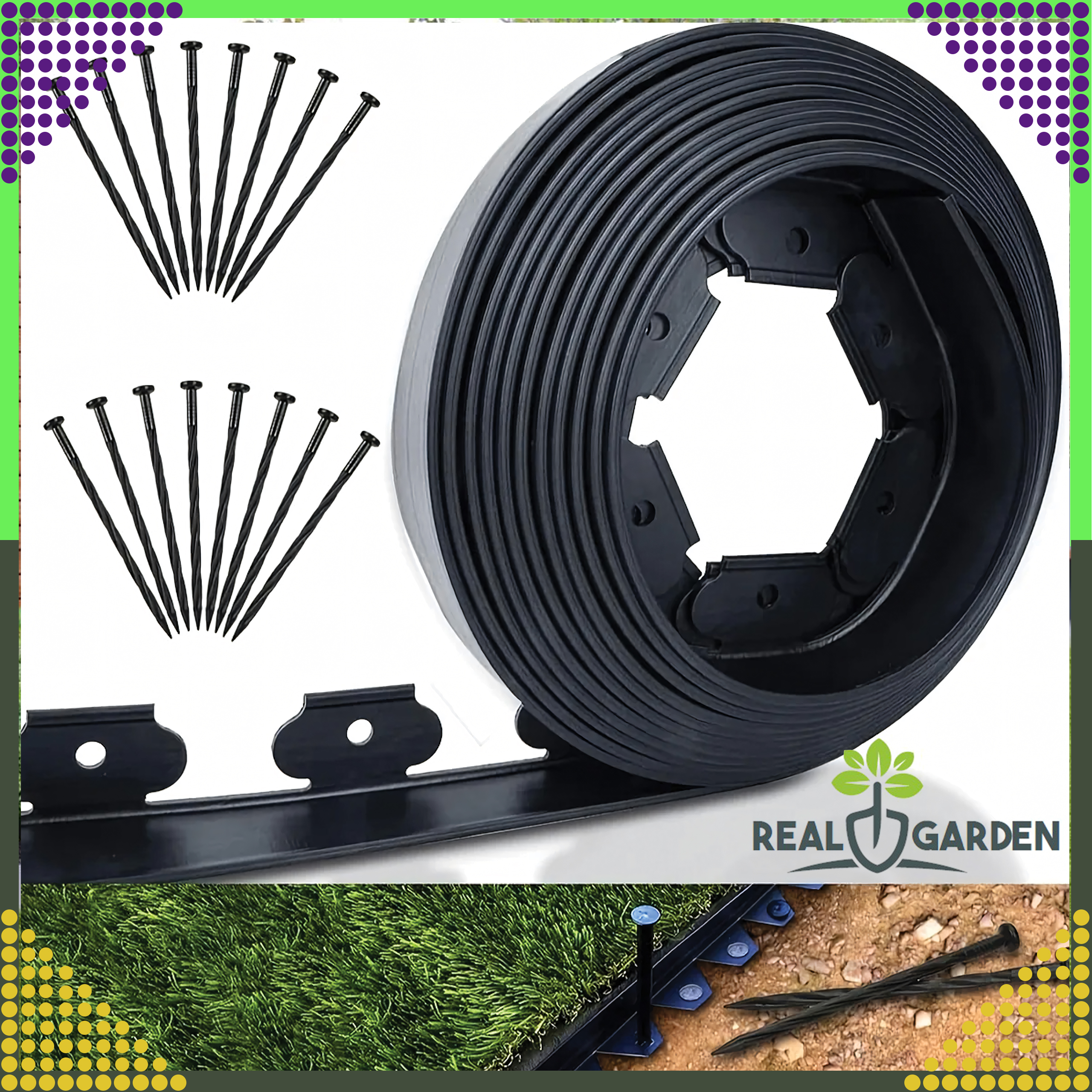 Zestaw Obrzeże Trawnikowe Ogrodowe 50x50x10m 30 Kołków Kotew Czarne