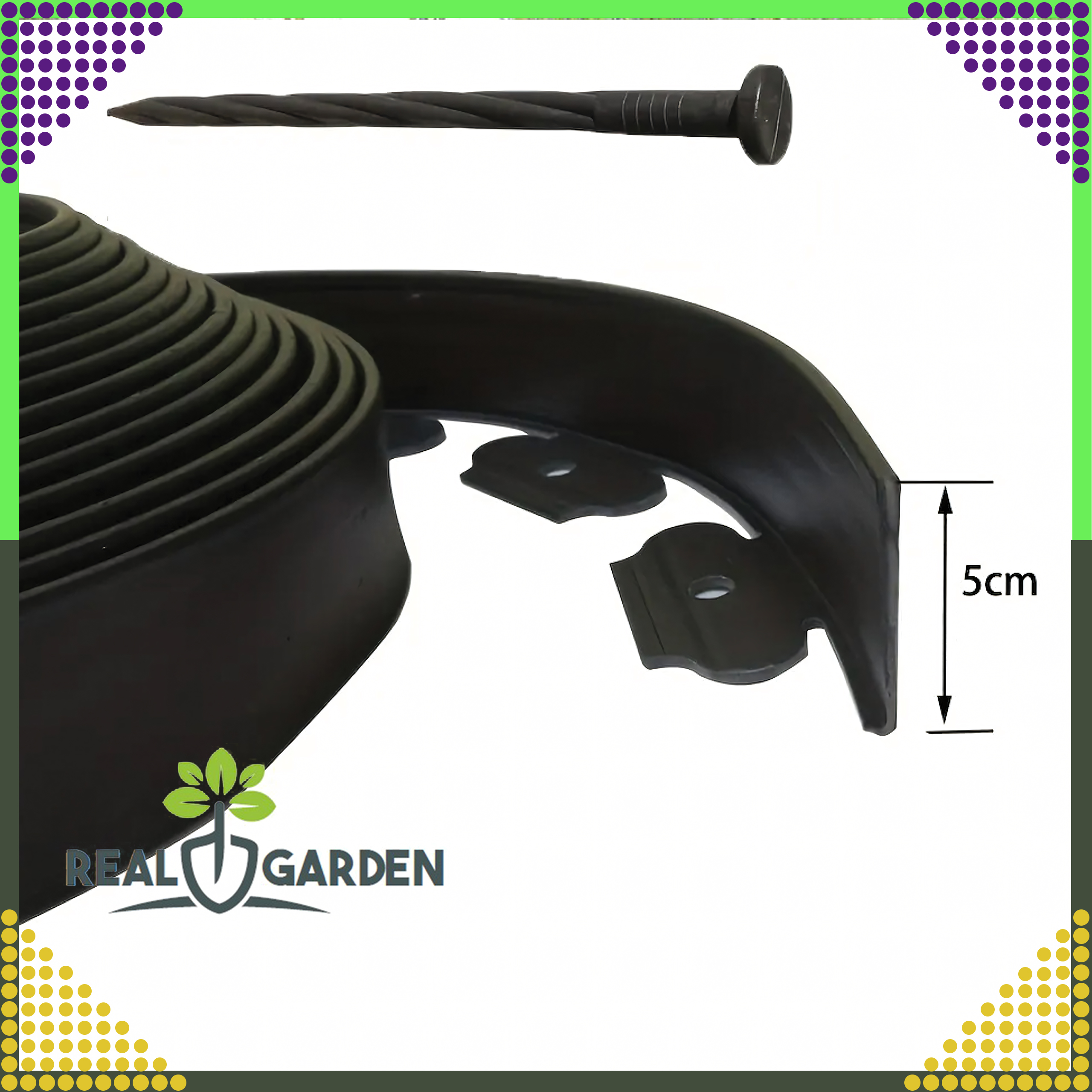 Obrzeże trawnikowe elastyczne 50 mm + 30 kotew – 10 metrów kolor CZARNY