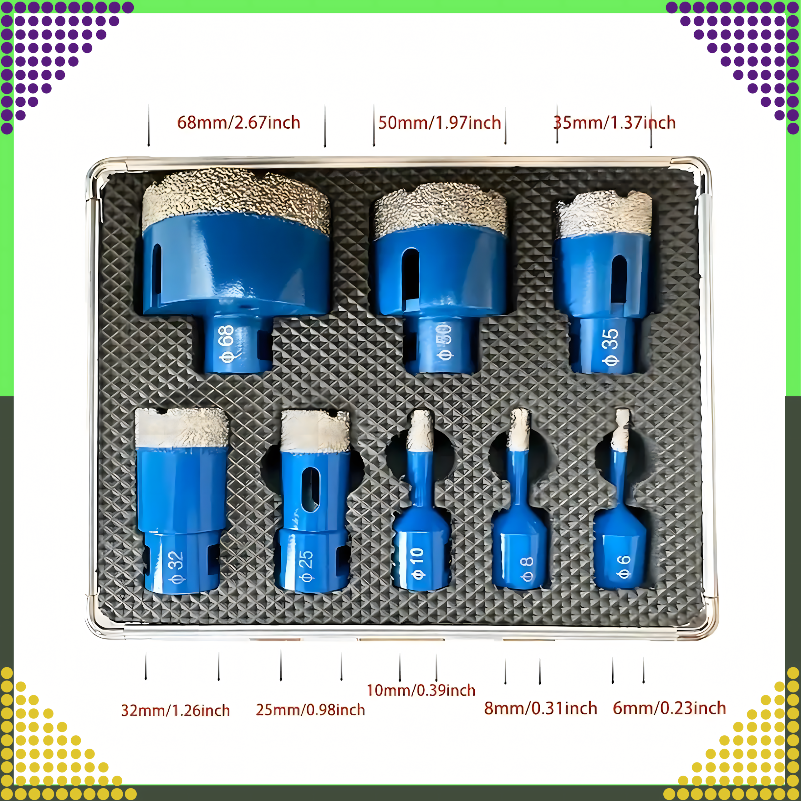 👉 Zestaw Diamentowych Otwornic – 8 sztuk do Cegły, Betonu, Granitu i Płytek – Praca na Sucho i na Mokro!