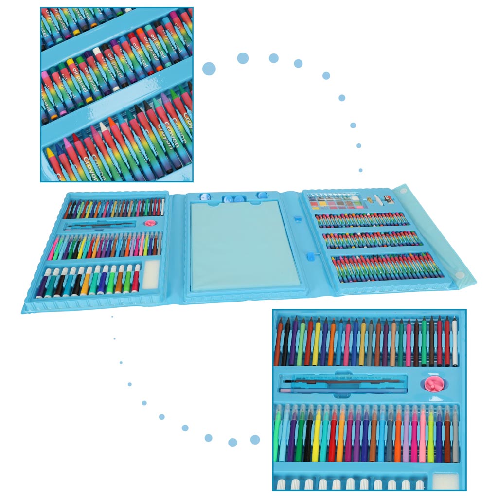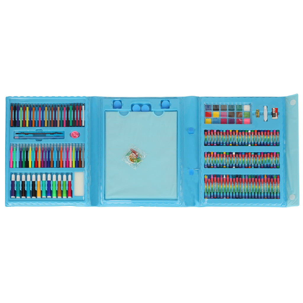 Fantastyczny zestaw plastyczny w poręcznej walizce. Mieści wiele przyborów: mazaki, kredki, farby i inne akcesoria. Idealny do pracy w szkole lub w domu. Zestaw składa się z 208 elementów. Wymiary złożonej walizki: 31x41x3,5cm.