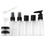 9-częściowy zestaw buteleczek i pojemniczków, specjalnie zaprojektowanych do przewożenia kosmetyków w podróży.