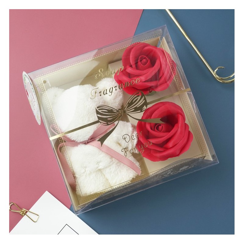 Zestaw prezentowy ręcznik + zapachowe kwiaty mydlane w ozdobnym pudełku BUK06CZE