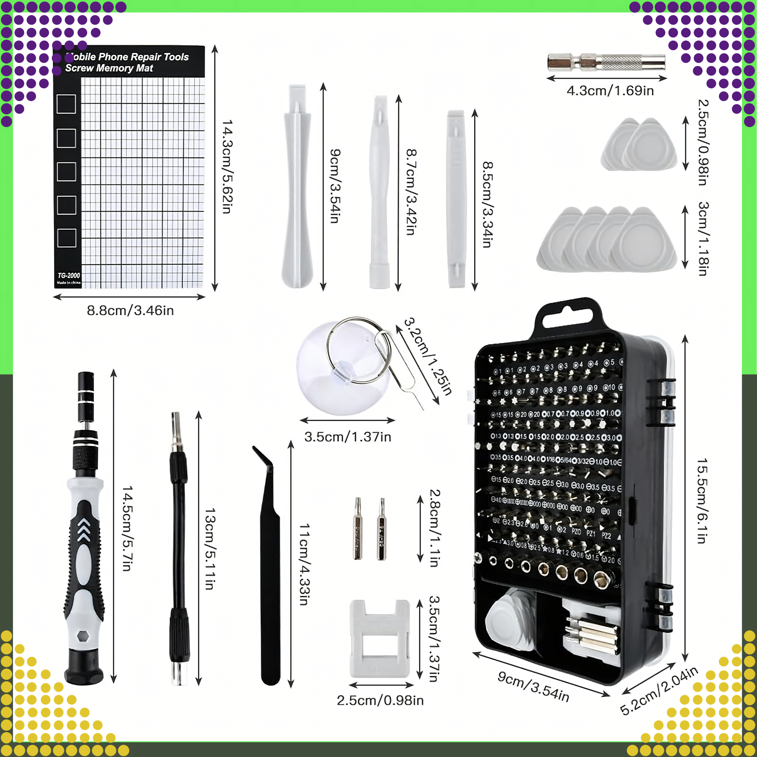 Ten kompletny zestaw śrubokrętów precyzyjnych 120 w 1 został zaprojektowany z myślą o wszechstronnych zastosowaniach, zarówno w domowych naprawach, jak i profesjonalnym serwisowaniu urządzeń. Zestaw jest zapakowany w dwuskrzydłowe, kompaktowe pudełko, które zapewnia porządek oraz łatwość transportu.