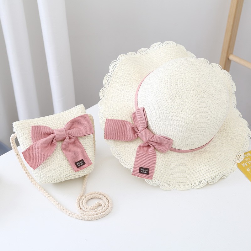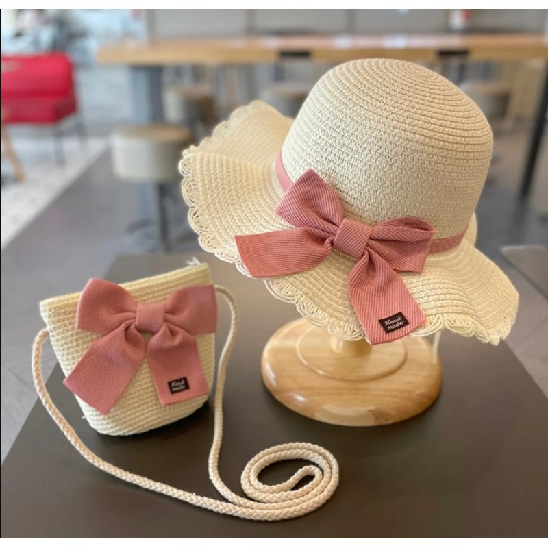 Zestaw kapelusz dziecięcy słomkowy + torebka słomkowa z KOKARDĄ