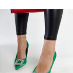 Zielone szpilki o satynowym wykończeniu z cyrkoniami Clemente – Solea