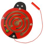 Drewniana gra magnetyczna w kształcie jabłka. Zabawa polega na wyjęciu 10 kolorowych robaczków za pomocą patyczka zakończonego magnesem. Pobudzi zmysł logicznego myślenia i zręczności. Tworzywo: drewno, plastik, metal. Wymiary: 15,5x15x6,5cm.